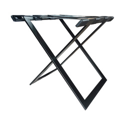 Dobrável Preto Dobrável Hotel Bagagem Rack Metal Display Stand Mala Prateleiras Com Correias De Nylon