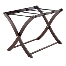 Portabagagli pieghevole pieghevole nero Hotel in metallo espositore valigia scaffali con cinghie di Nylon