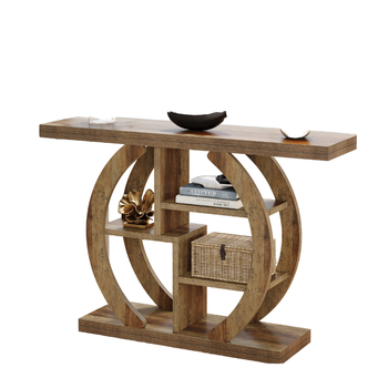 42.5 "โต๊ะคอนโซลไม้แข็งทำด้วยมือโซฟา5ชั้นพร้อมฐานรูปทรงเรขาคณิตเปิดประทุนสำหรับใช้ในห้องนั่งเล่น